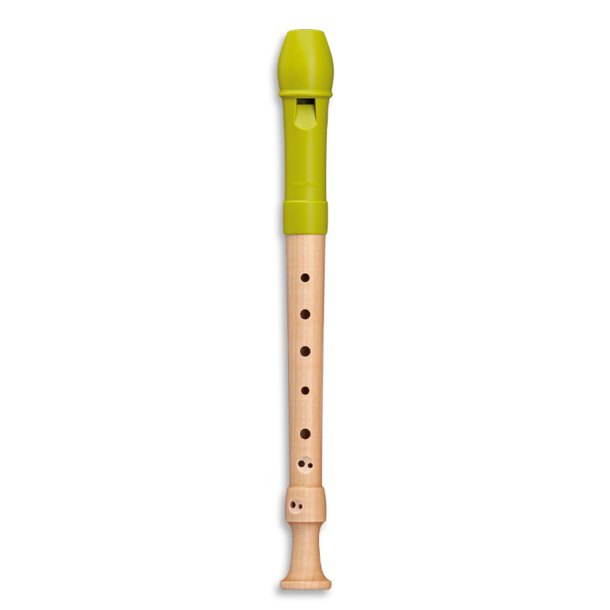 Die fröhliche Sopranblockflöte besticht durch ihr farbiges Kopfstück aus apfelgrünem Kunststoff und das Griffstück aus hochwertigem europäischem Ahornholz.